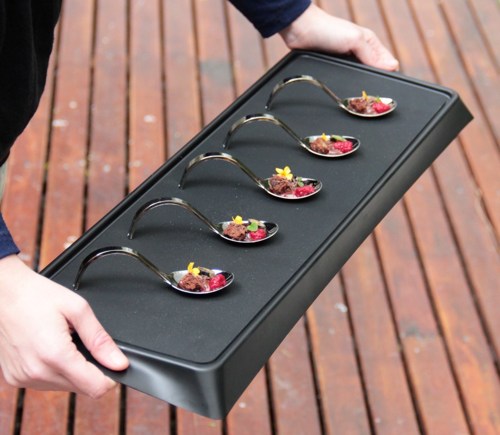 Si querés también podés agregarle una superficie antideslizante para llevar cristalería. Lo encontrás acá: Accesorio Goma (negro)