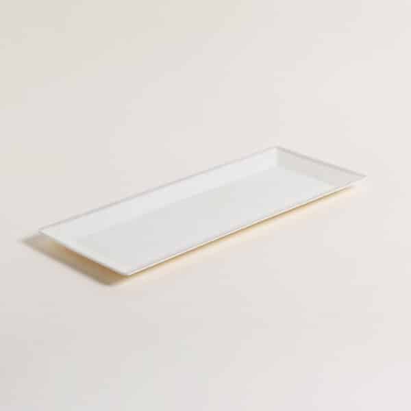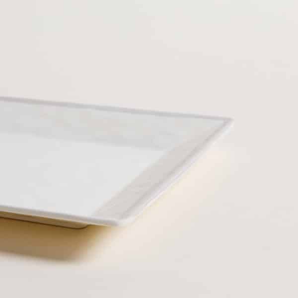 Bandeja liviana de melamina terminación símil cerámica. Ideal para presentaciones de comidas en restaurantes, catering y eventos.