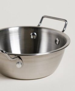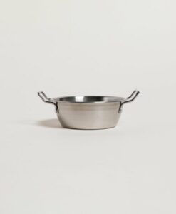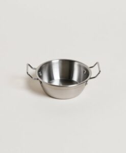 Cacerola de acero inoxidable de 12×4 cm con asas.