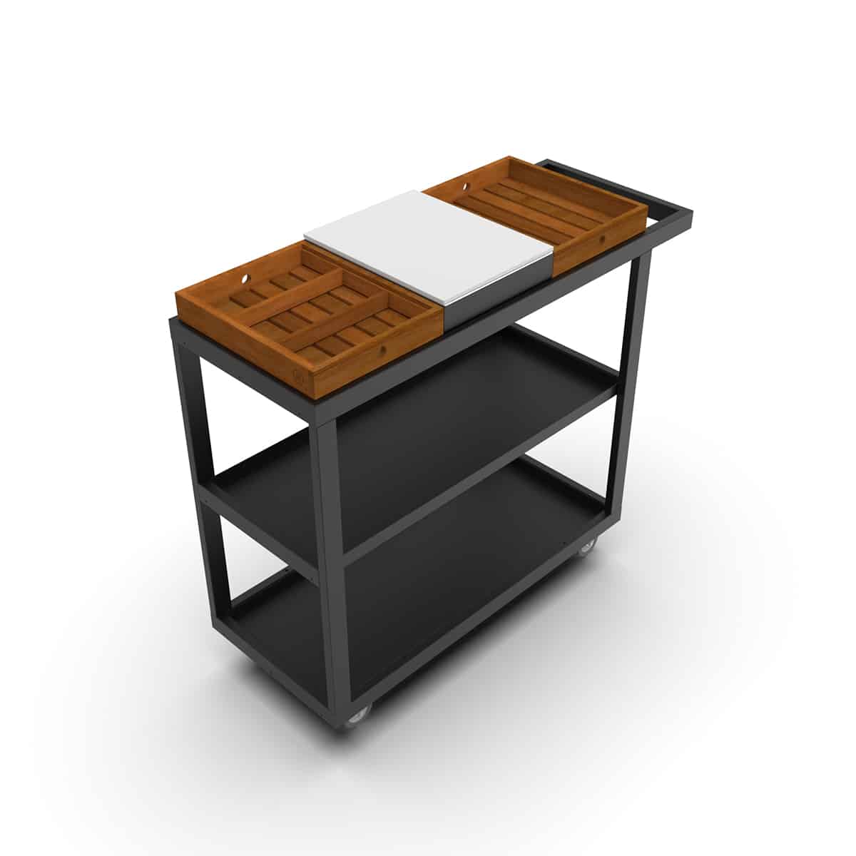 Carro realizado en acero con terminación negro microtexturado