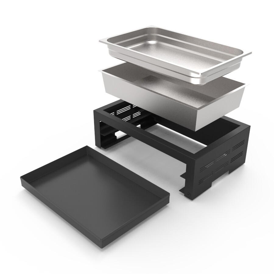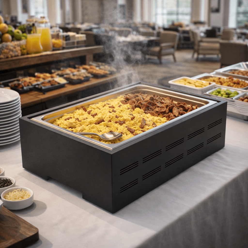 Mantiene la temperatura de los alimentos mediante baño maría (calor por convección) ó baño maría inverso (frío por convección).