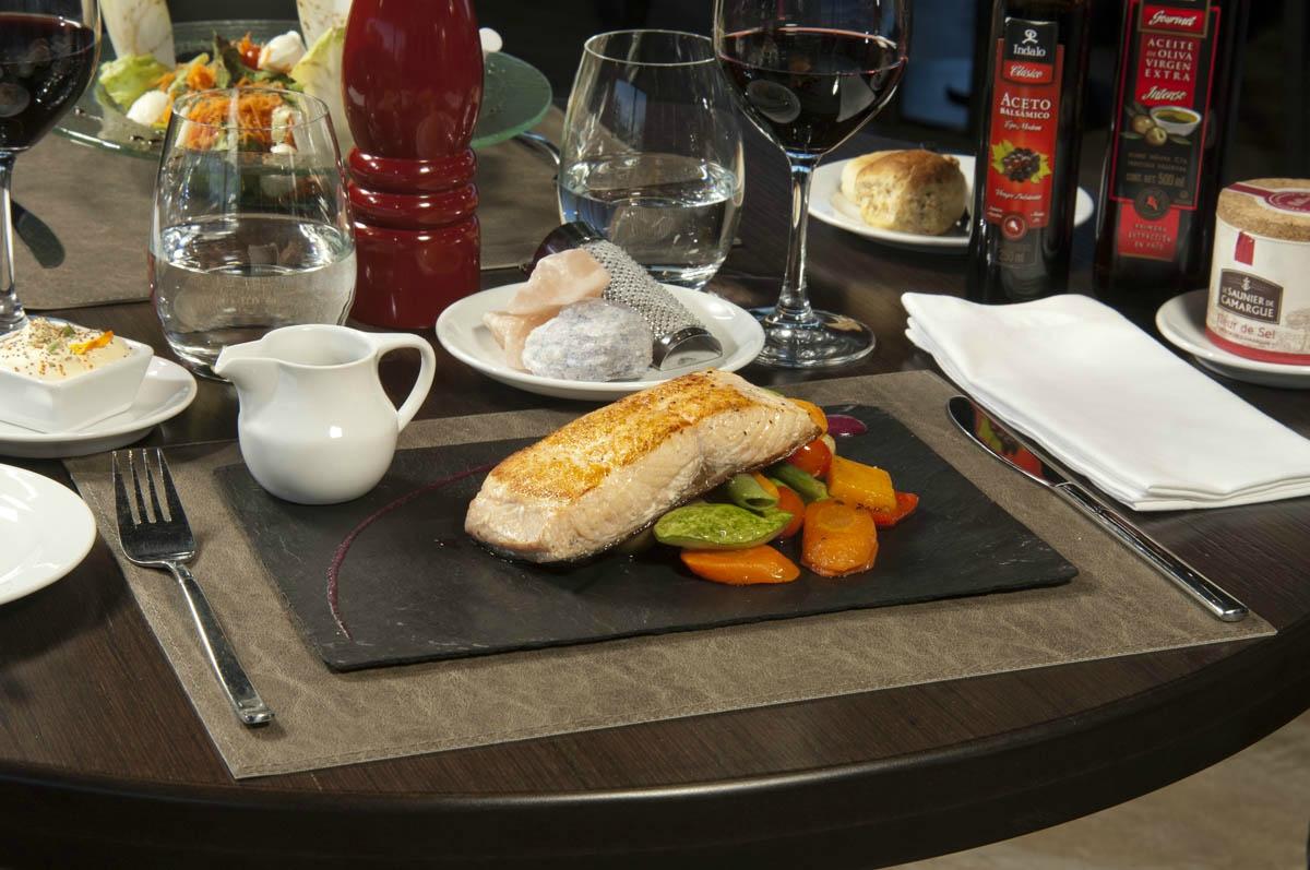 Para que la laja se vea más oscura y pareja, antes de servir la comida podés pasarle un paño con vaselina líquida (también vienen incluídos).