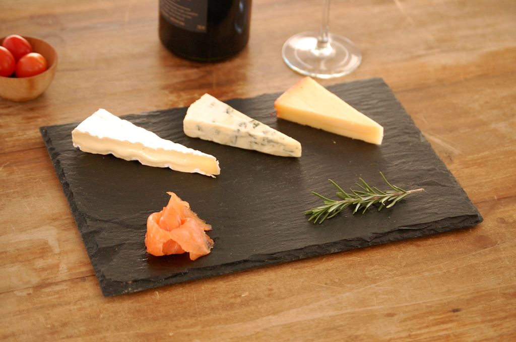 Nuestras bandejas y platos de piedra naturales ofrecen una superficie distintiva para servir quesos, embutidos, sushi, finger food y postres. Procedentes de una cantera española, cada laja rústica es sofisticada y presenta un borde natural e irregular.