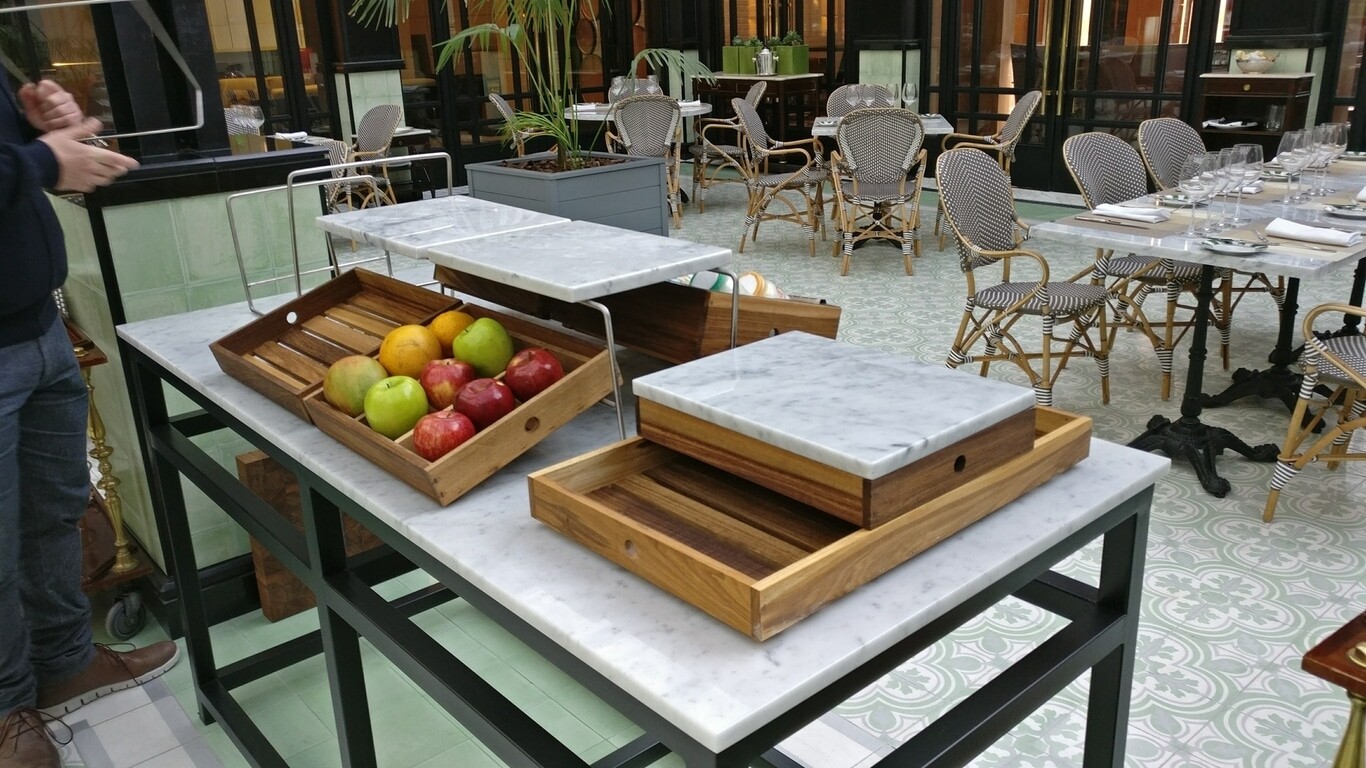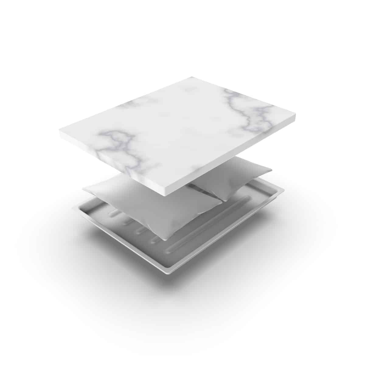 Incluye: Bandeja plástica, placa de mármol de Carrara y gel refrigerante.