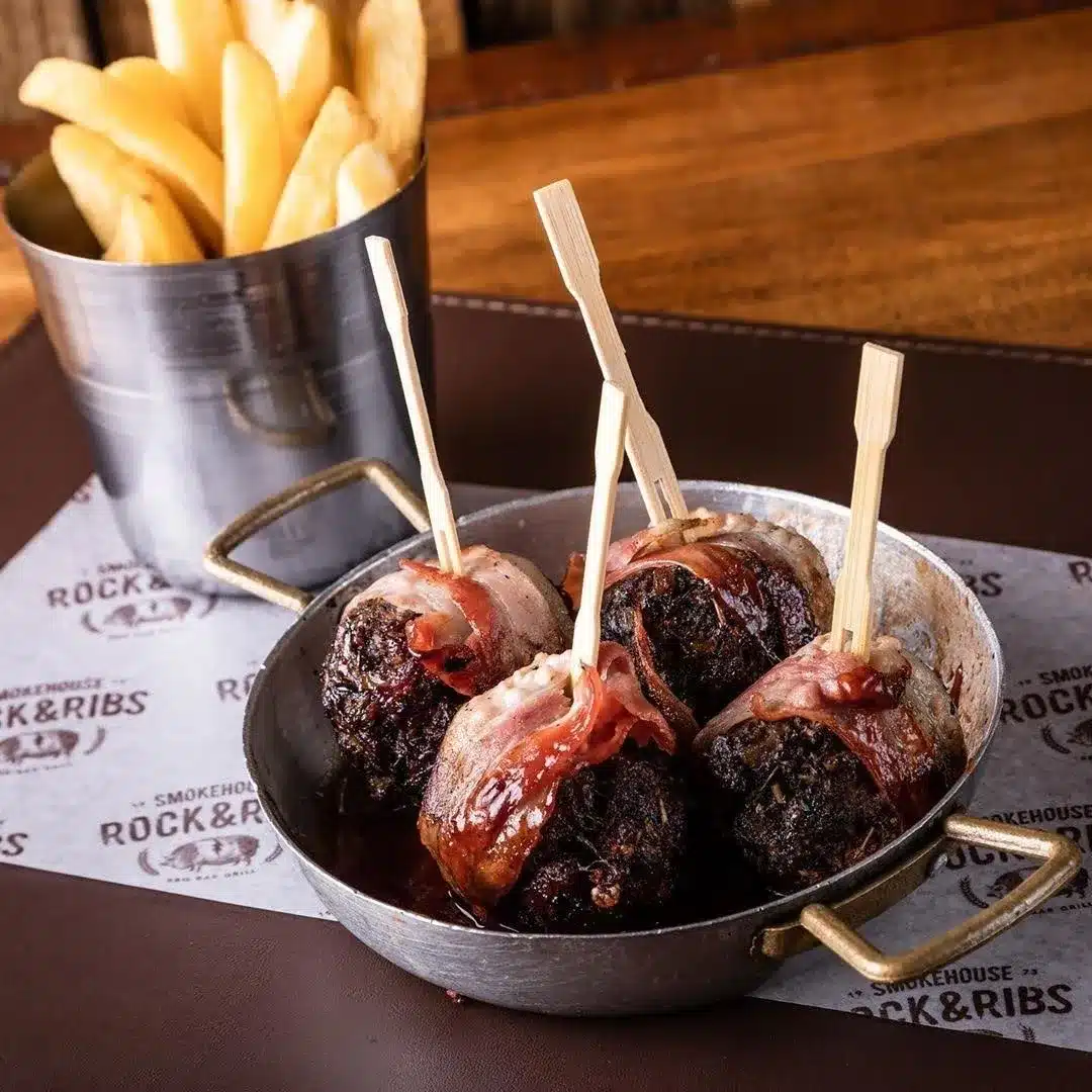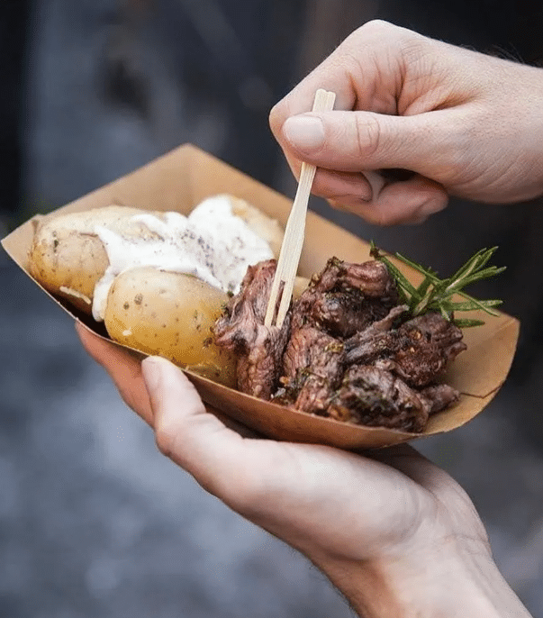 Pincho de madera de 9 cm con doble punta ideal para picadas, degustaciones, food trucks, caterings y eventos.