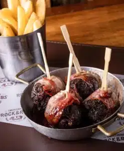 Pincho de madera de 9 cm con doble punta ideal para picadas, degustaciones, food trucks, caterings y eventos.