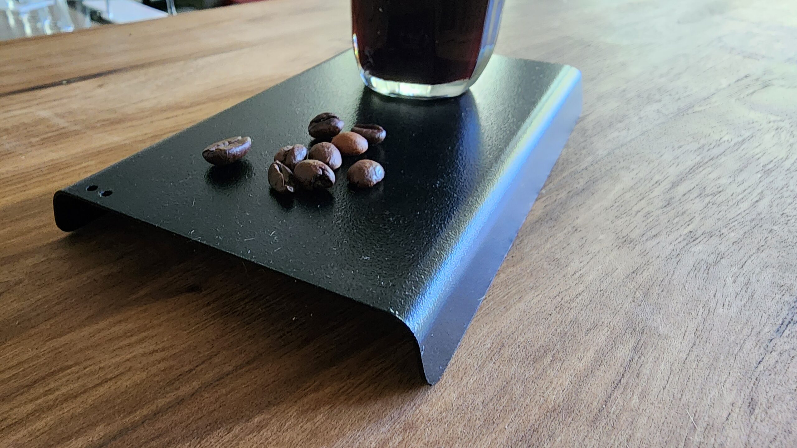 Platito de acero pintado con epoxi negro semi-mate.