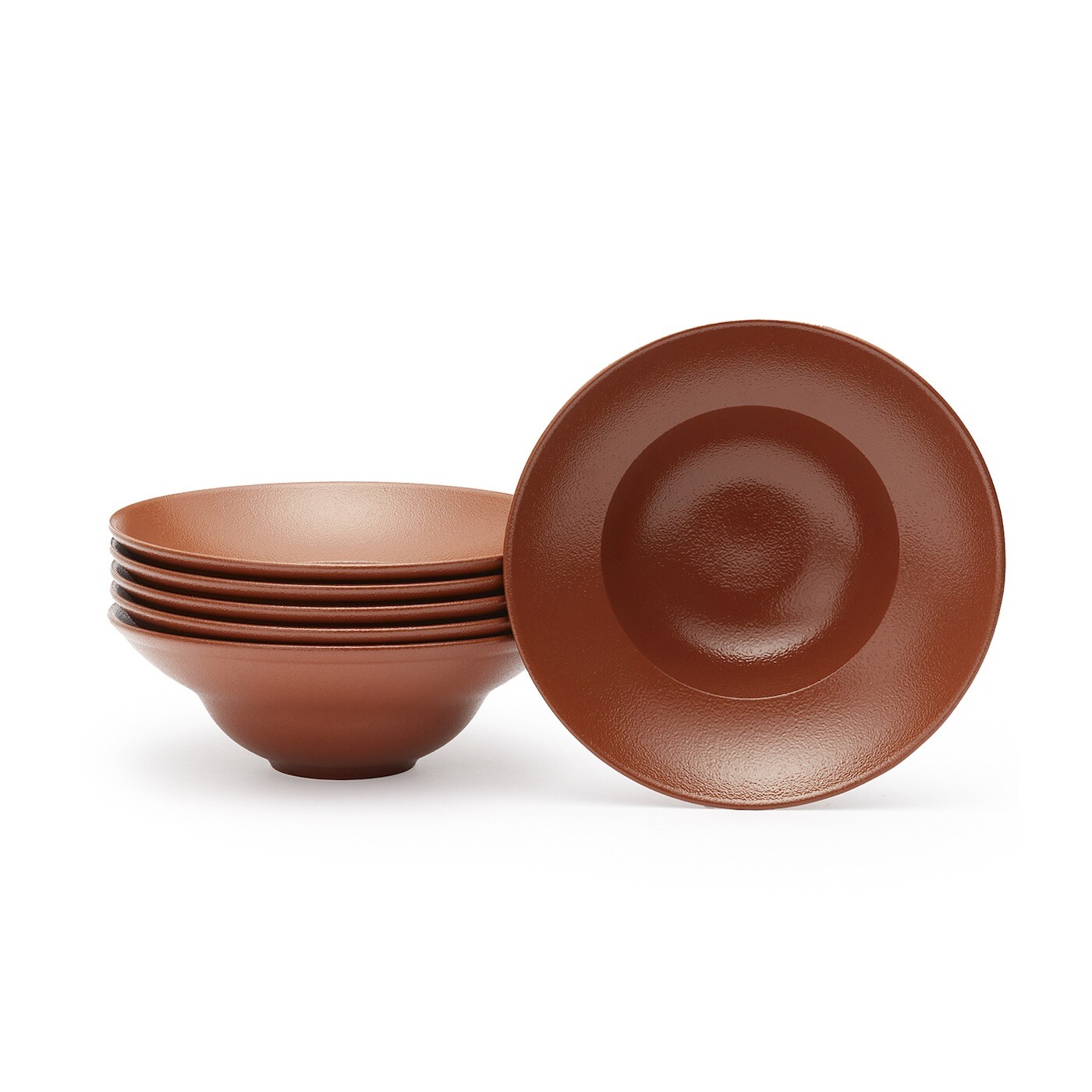 Plato Hondo de ala ancha con diámetro de 23 cm en porcelana de alta resistencia color terracota.