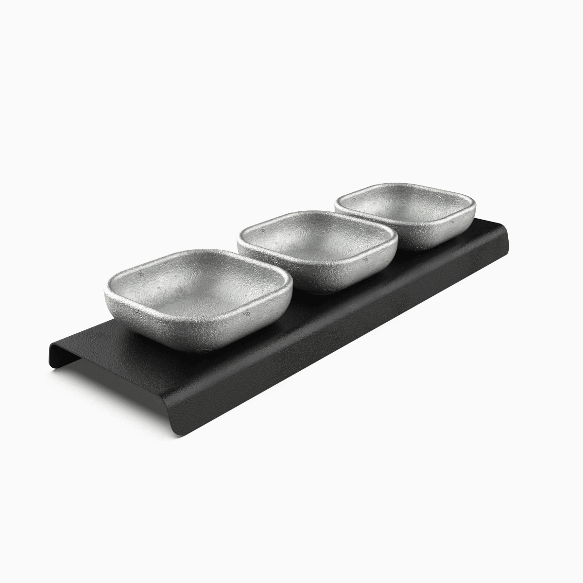 Para contener tres dips como estos: https://www.ajidesign.net/product/dip-de-aluminio-7×7/ o estos https://www.ajidesign.net/product/dip/