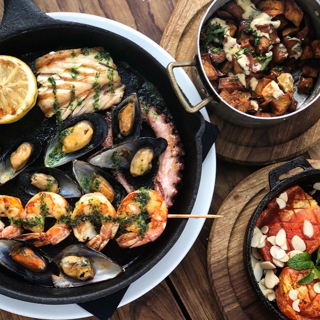Al ser curada, los alimentos no se pegan y se evita la toxicidad del teflón. Además, podés cocinar y presentar en mesa en el mismo elemento, manteniendo el calor de los alimentos por un tiempo prolongado. Te recomendamos la base de Sartén para una mejor experiencia: https://www.ajidesign.net/product/base-cuadrada-para-sarten-de-24-cm/