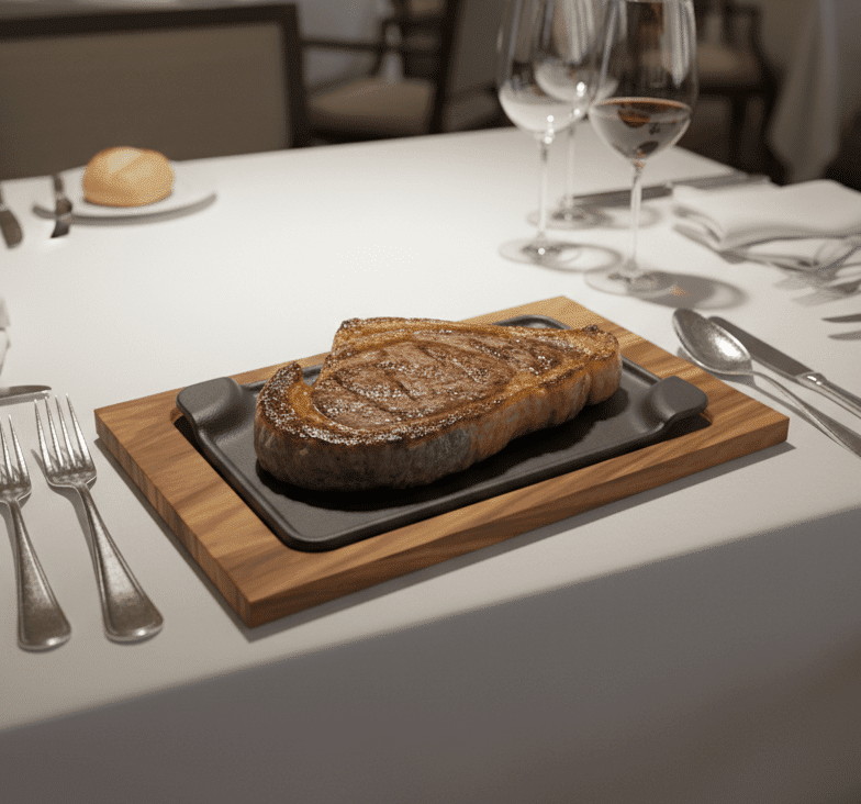 La placa de fundición es ideal para carnes dado que sus bordes contienen los jugos de las mismas.