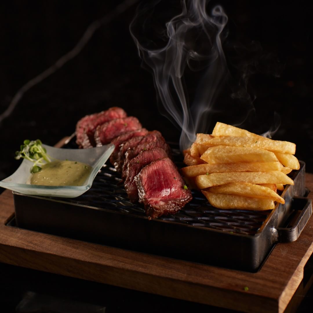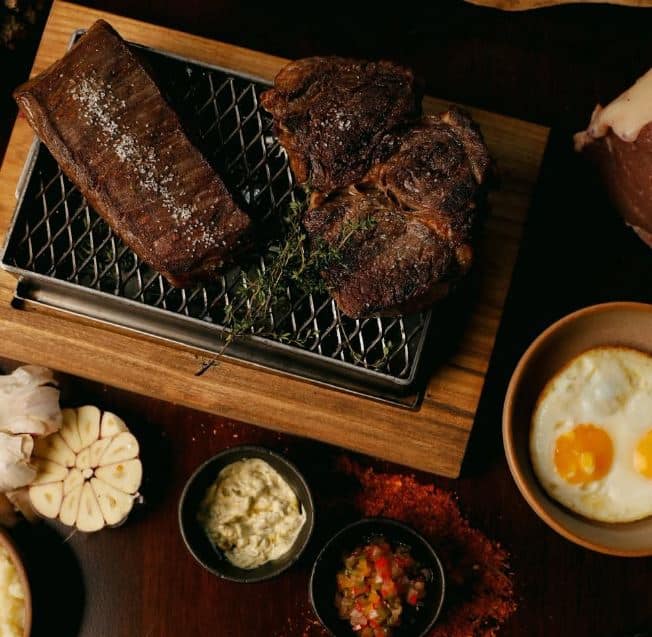 Tabla de madera y acero ideal para servir grillados.